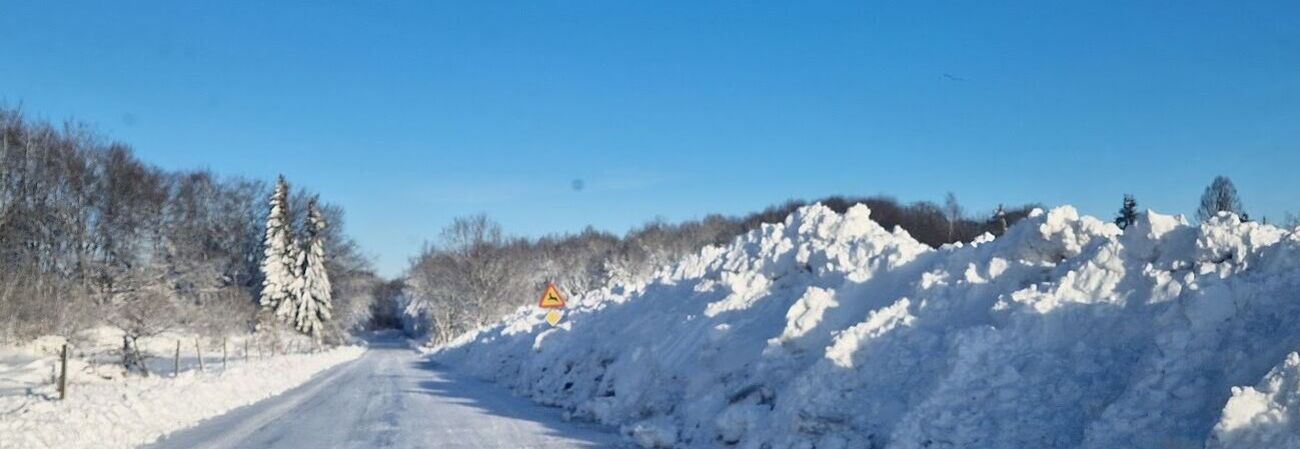 Agusa låg mitt i detta område och fick mellan 70-80 cm snö på mindre än ett par dygn. Vårt stora problem just då var att komma in i hägnet för att ge djuren mat, det gick inte att öppna upp vägen med vanliga traktorer utan vi fick kalla in rejäla maskiner för att komma in. Väl inne i hägnet mötes vi av en förödelse av det större slaget, vägarna var inte farbara på grund av snömassor och fallna träd. Som tur är finns det en stor öppen plats precis inne i hägnet där vi skottade av och kunde lägga ut foder.